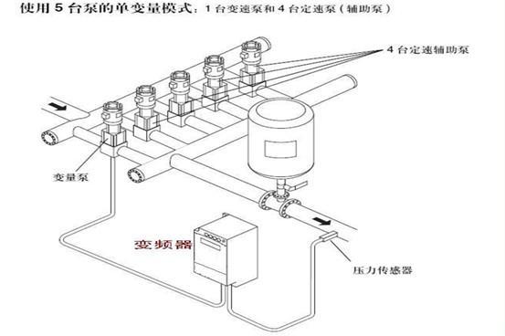 5)泵組及線路保護檢測報警,信號顯示等將管網的實際壓力經反饋后與給定壓力進行比較,當管網壓力不足時,變頻器增大輸出頻率,水泵轉速加快,供水量增加,迫使管網壓力上升。反之水泵轉速減慢,供水量減小,管網壓力下降,保持恒壓供水。